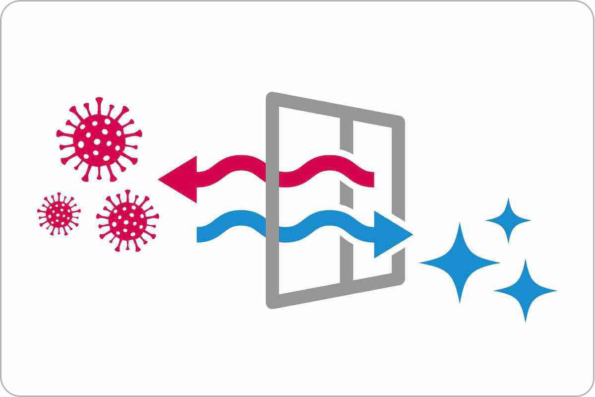 SBF(スーパーバイオフィルタ) 感染対策の一環として、院内空気循環の中核機器にSBF(スーパーバイオフィルタ)を設置しています。0.3μmまでの細菌など不純物の99.7%を捕集、ろ過することができるバイオフィルタです。 -